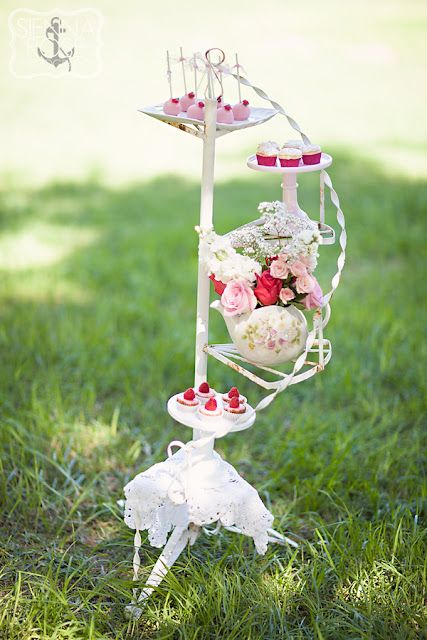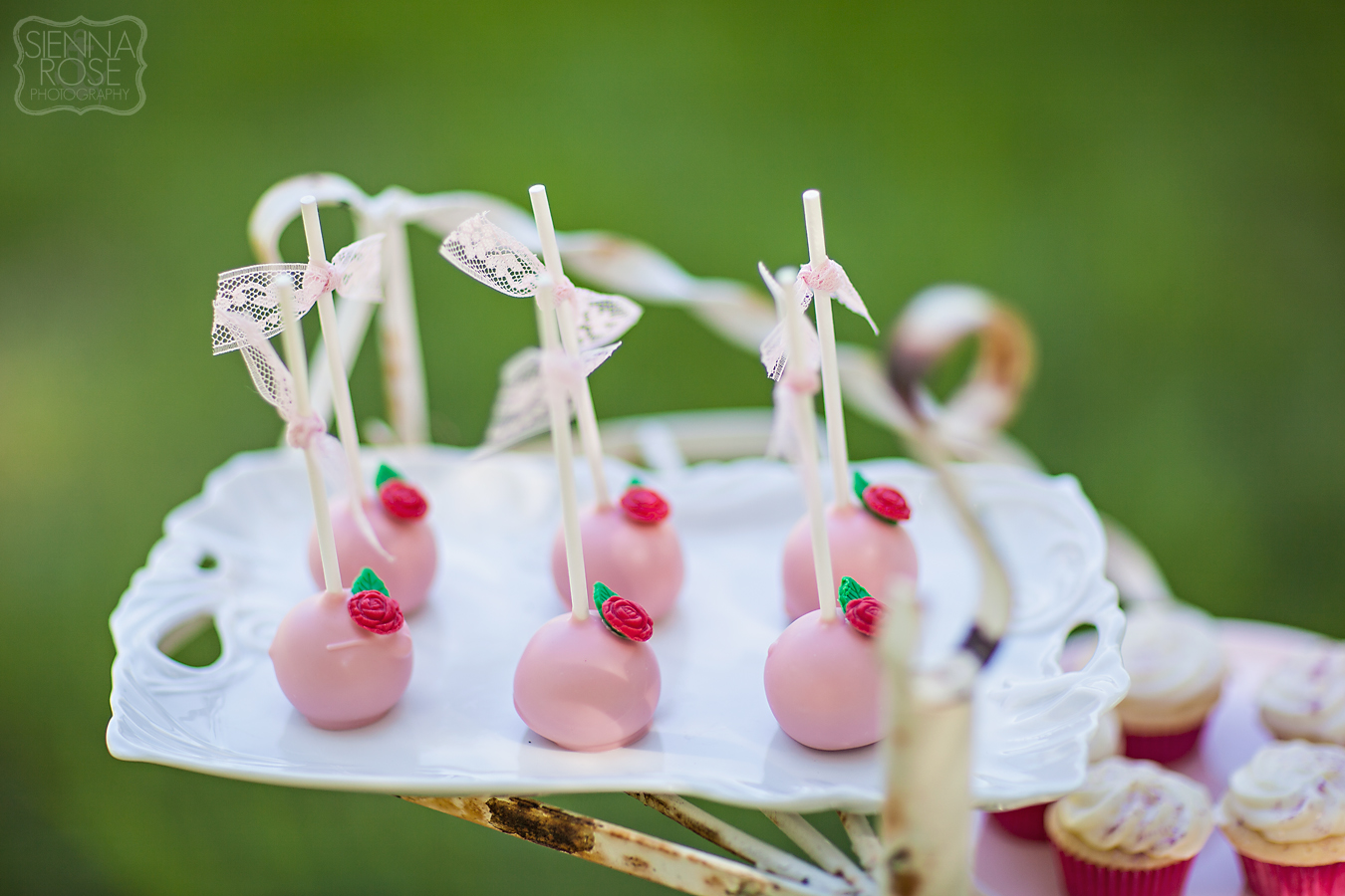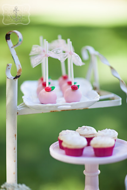 Hello everyone! This weekend was very exciting for me the photos from the styled photo shoot I took part in last month came out! This styled photo-shoot was created by the very talented Aracely, Owner of Minted and Vintage Dessert Stand Rentals. When Aracely first approached me to be apart of her photo-shoot along side other amazing vendors, I was beyond honored and excited to be considered for this event. The idea behind this photo-shoot was designed for a Children's Tea Party. The main elements for this theme was vintage white lace, doilies, pink with white polka dots, pink and red roses with green leaves, strawberries, cherries, teapots, tea cups and saucers, sprinkles, tea time, childlike play food. So taking all these elements into creating my Cake Pops was very important to me, so I went to the drawing table and began to brainstorm ideas. My goal was to create Cake Pops that not only matched the theme but had a simplistic, girly feel to it. In creating the perfect Cake Pops to match the theme, I used pink paper straws, regular white lollipop sticks and cut them at 4 inches to create miniature sized treats suitable for children. I also decided to use a pale pink lace fabric as ribbon to add a little vintage flare to the Pops. As the day came for the photo-shoot I was so excited to see the set up and when I arrived to the location boy was I blown away! It was like a dream, something I will never forget! It was amazing to see Aracely in action setting up the Tea party, her talent and attention to detail is out of this world. So before I keep rambling on I'm so excited for you all to see my work showcased in my very first styled photo-shoot! I'm also thrilled to say Aracely, the other amazing vendors and I were featured on www.karaspartyideas.com!! SOOOOOO exciting!! :) So hope you enjoy the pictures and check out the all the talented vendors who were apart of this remarkable Tea party!